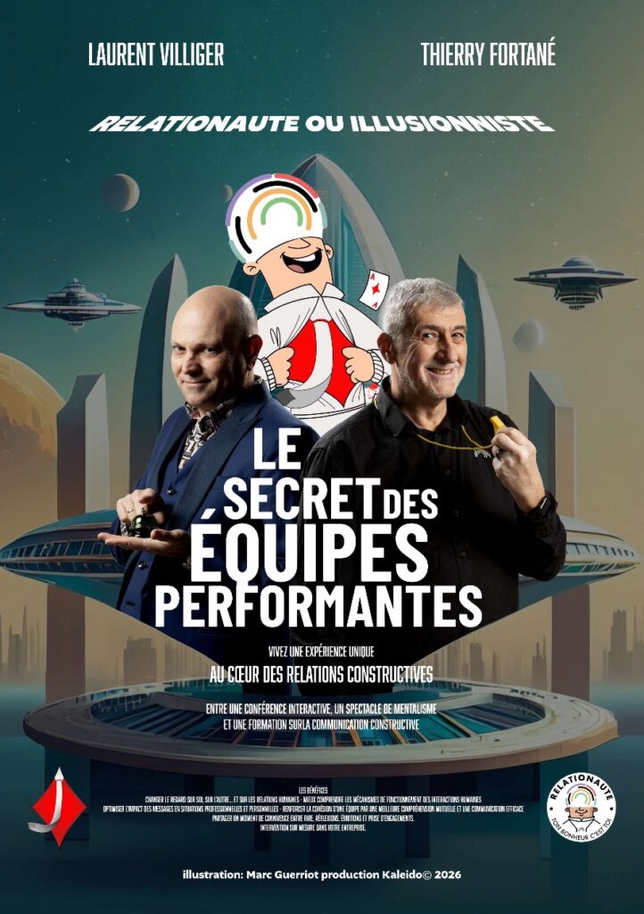 C’est une conférence-spectacle où l’expertise en communication (Thierry Fortané) se mêle à la magie mentale (Laurent Villiger).